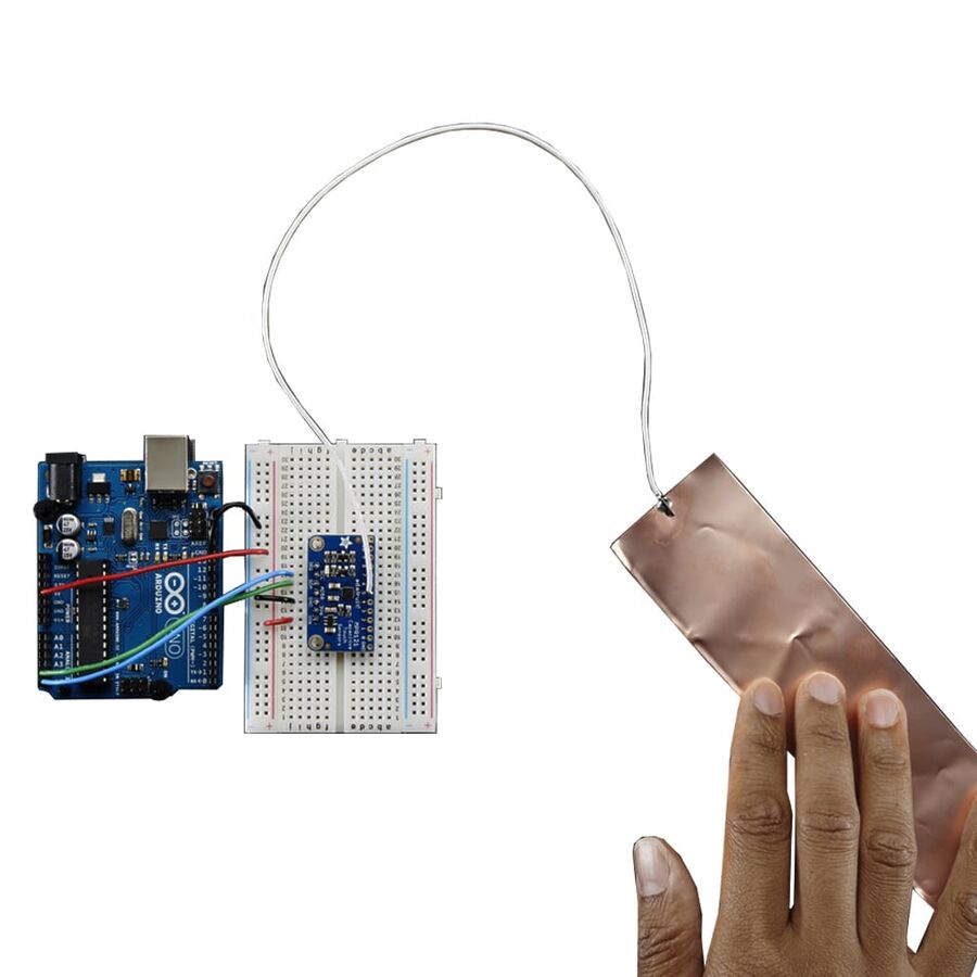 MPR121'in oynadığı bu kullanımı kolay 12 kanallı kapasitif dokunmatik sensör koparma kartı ile bir sonraki mikrodenetleyici projenize çok sayıda dokunmatik sensör ekleyin. Bu yonga, 12 ayrı dokunmatik yüzeye kadar işleyebilir.