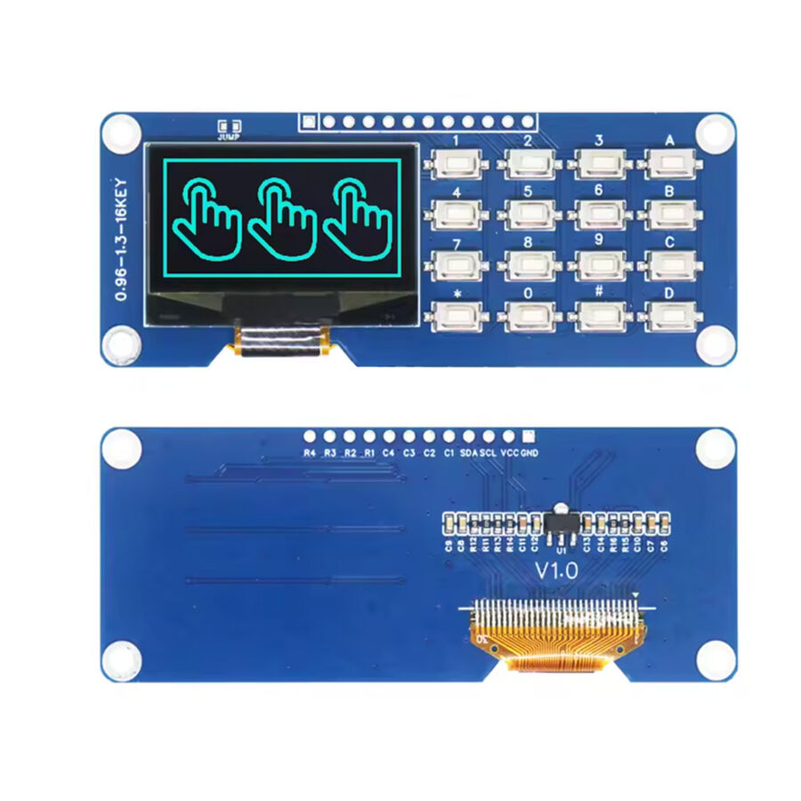 4x4 Klavye Modülü ile birlikte sunulan 1,3 inç OLED ekran seti, Arduino, Raspberry Pi ve diğer mikrodenetleyici platformlarıyla uyumlu, kompakt ve çok yönlü bir giriş–çıkış çözümüdür. SSD1116 sürücülü 128x64 çözünürlüklü OLED ekran; yüksek kontrast, düşük güç tüketimi ve keskin görüntü kalitesiyle projelerde net bir kullanıcı arayüzü oluşturmanıza olanak tanır. I2C ve SPI iletişim seçenekleri sayesinde farklı geliştirici kartlarına kolay entegrasyon sağlar.
