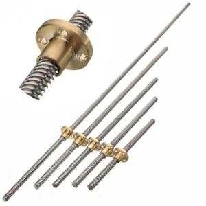 3D Yazıcı Vidalı Mil Somun, vidalı mil ve somun setini 3D printer ve CNC yapımında kullanabilirsiniz. Vidalı mil paslanmaz çelik malzemeden ve somun pirinç malzemeden yapılmıştır. Somun bir tur döndüğünde 8mm ilerler.