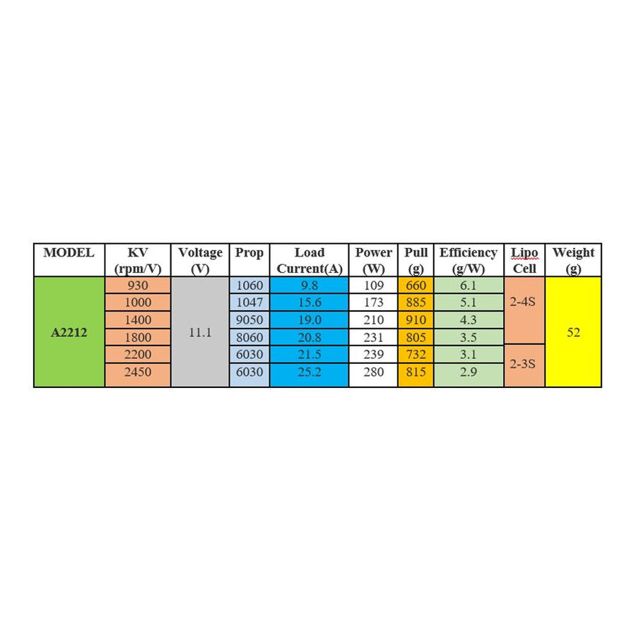 A2212 Quadcopter 1800KV Fırçasız Motor Teknik Özellikler