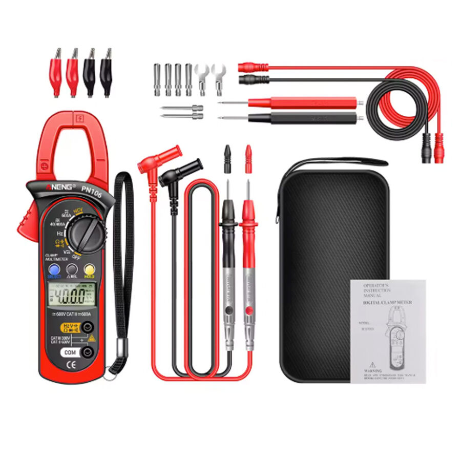ANENG PN106 600A Pensampermetre, 600A akım ve yüksek hassasiyetli ölçüm kapasitesiyle elektrik teknisyenleri ve profesyonel kullanıcılar için ideal bir test cihazıdır. 4000 sayım dijital ekranı ile hem AC hem de DC gerilim, akım, direnç (ohm), diyot testi, frekans ve kapasitans gibi birden fazla ölçüm özelliği sunar. Yüksek doğruluk ve güvenilirlik sağlayan ANENG PN106, elektrik devrelerinde ve araçlarda detaylı testler yapabilmenizi mümkün kılar. NCV (temassız gerilim algılama) fonksiyonu, güvenli şekilde gerilim tespiti yapmanızı sağlar ve kullanıcıların güvenliğini ön planda tutar.