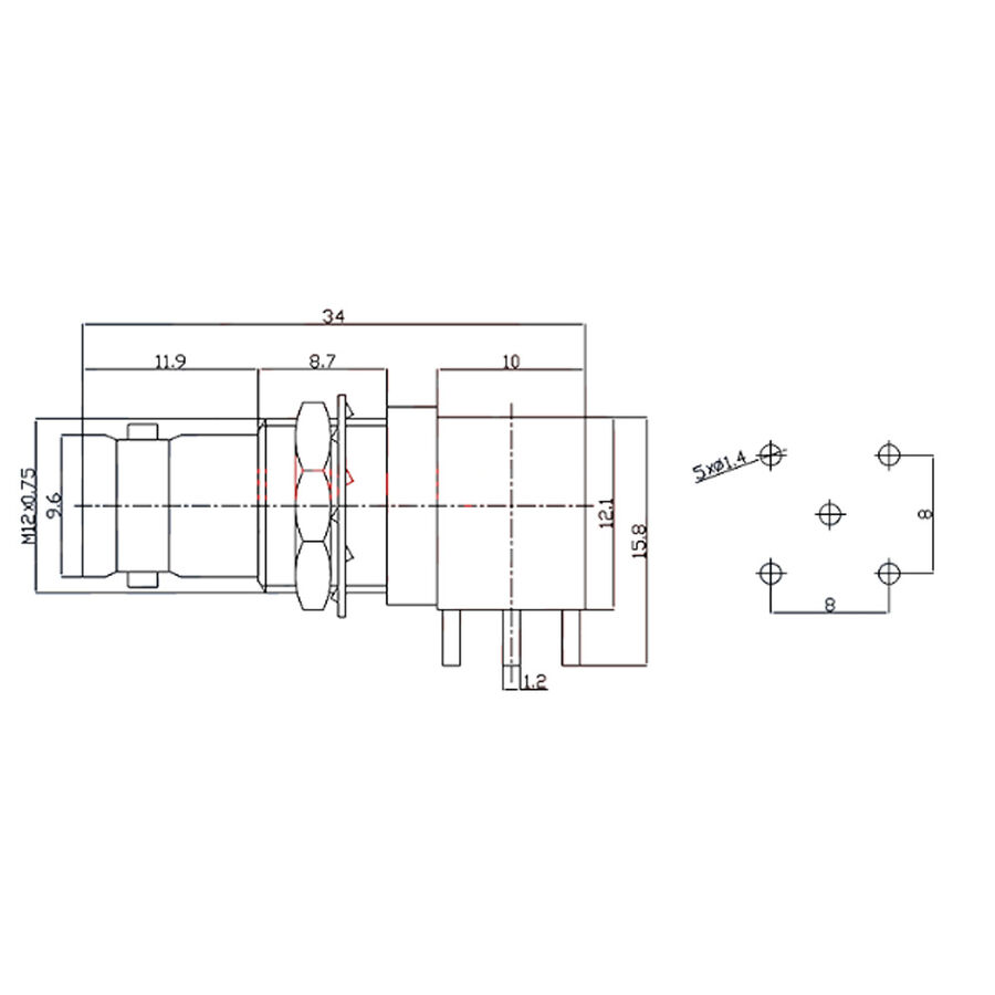 BNC Dişi Sağ Açılı PCB Panel Tipi Konnektör - Teknik Özellikleri