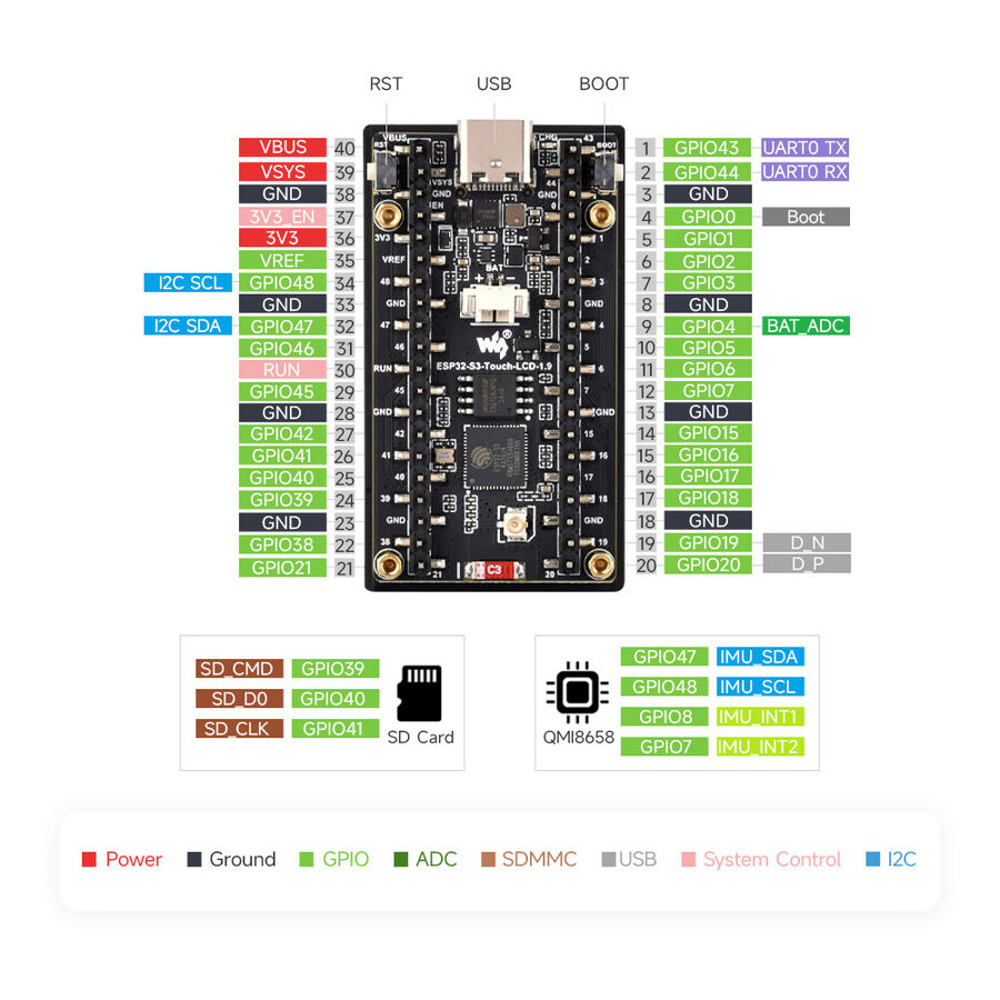 - ESP32-S3 1.9" 170×320 LCD Ekranlı Wi-Fi & Bluetooth Geliştirme Board Wiki Sayfasını inceleyebilirsiniz.