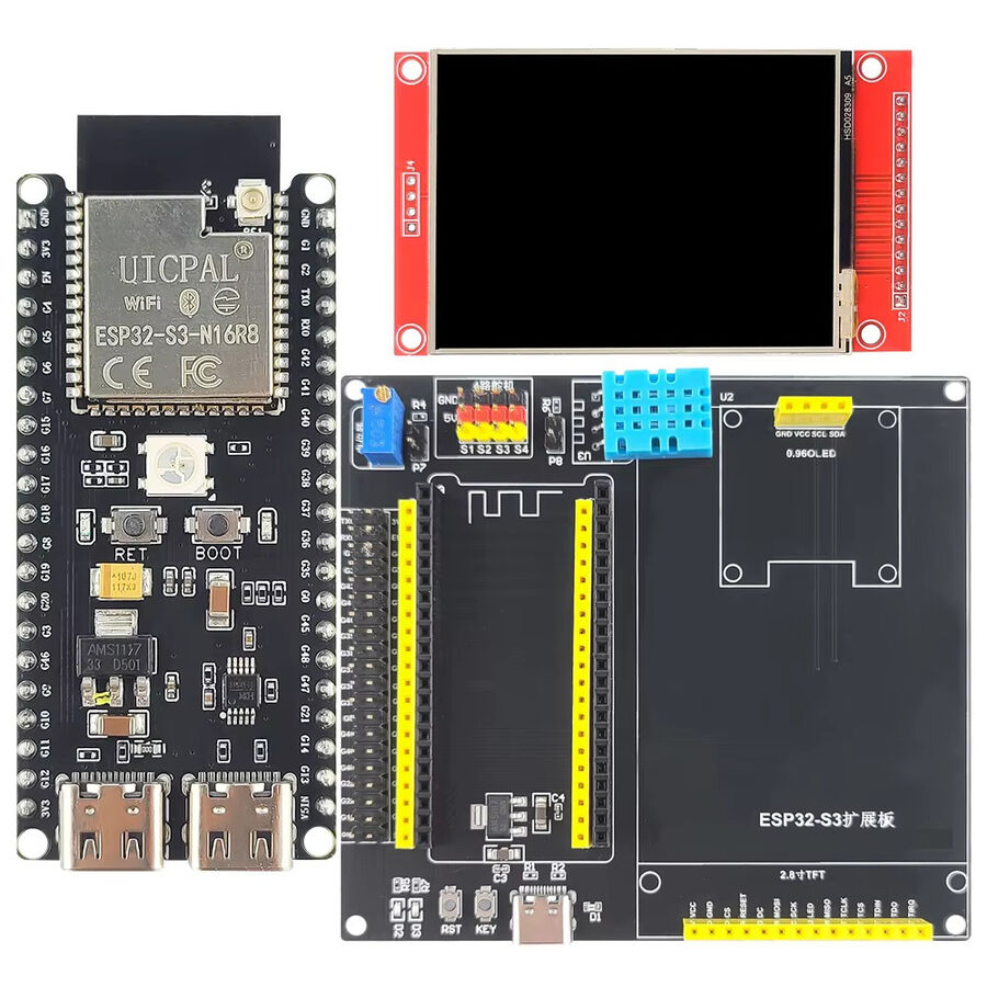 CH340C USB–UART dönüştürücüsü sayesinde bilgisayar bağlantısı son derece stabil ve kolaydır. Type-C arayüzü modern cihazlarla uyumluluk ve hızlı programlama avantajı sağlar. Üzerindeki 2.8 inç TFT ekran, kullanıcı arayüzü gerektiren projelerde büyük kolaylık sunarken, ESP32-S3’ün AI hızlandırma özellikleri görüntü işleme, IoT, robotik ve akıllı sistem uygulamalarında ileri seviye bir çalışma ortamı oluşturur. Hem hobi hem de profesyonel geliştirmeler için güvenilir, güçlü ve genişletilebilir bir platformdur.