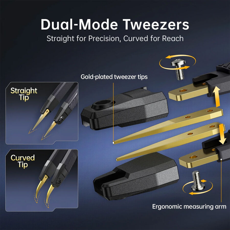 - Çift Ölçüm Yöntemi: Cımbız Uç + Kelvin Klips : Düz ve açılı cımbız uçlar küçük SMD bileşenler için; Kelvin klips ise dört telli hassas ölçüm için idealdir.