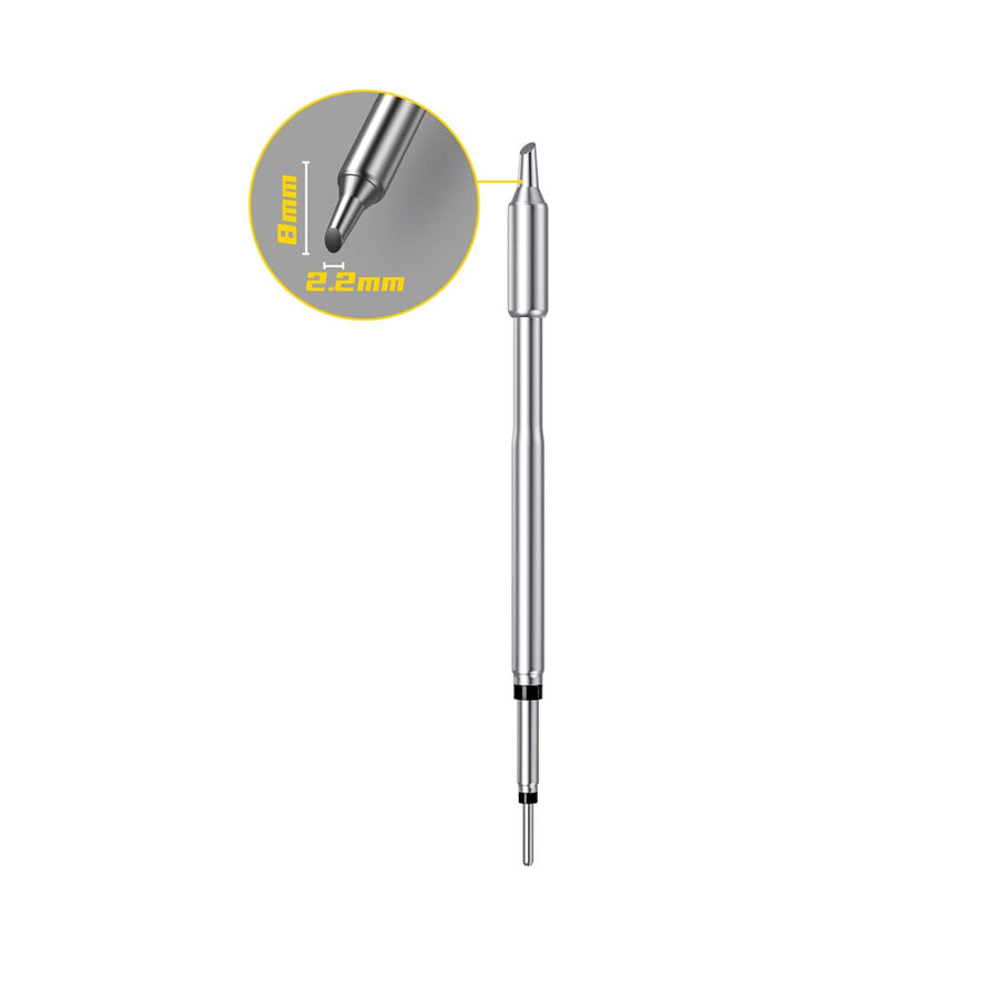 HS02A-C2 Havya Ucu, FNIRSI HS02A için lehimleme istasyonlarıyla uyumlu, hassas ve kontrollü lehimleme işlemleri için geliştirilmiş yüksek performanslı bir uç modelidir. C2 tipi yuvarlak ve hafif kıvrımlı tasarımı sayesinde özellikle noktasal lehimleme, küçük pad’ler ve ince devre yolları üzerinde çalışırken büyük kolaylık sağlar. Mükemmel ısı iletimi sunan yapısı, hızlı ısınma ve stabil sıcaklık avantajı sağlayarak hem profesyonel teknisyenler hem de hobi kullanıcıları için güvenilir ve uzun ömürlü bir kullanım deneyimi sunar.